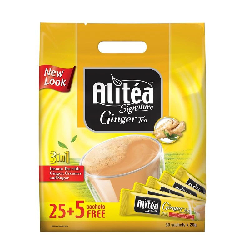 شیرچای علی تی Alitea زنجبیلی 30 عددی علی تی طعم تسکین دهنده و لذیذ اصلی چای کاراک را برای دوستداران وفادار چای با شیر در اطراف به ارمغان می آورد. از طعم خوشمزه خانگی که دوست دارید لذت ببرید. این پیش مخلوط کاملا متعادل از چای قرمز فوری با پودر زنجبیل طبیعی استخراج شده، طعمی تند را به فنجان چای روزانه شما اضافه می کند این محصول به تعداد 25 ساشه به علاوه 5 عدد ساشه هدیه ارائه می گردد. بطور کلی شیر چای علی تی زنجبیلی نوشیدنی گرمیست که طبعی گرم دارد و بسیار خوشمزه است. این نوشیدنی برای نخستین بار از کشور هند و سپس پاکستان در سراسر دنیا پخش شد و پس از هند و پاکستان انگلستان قطب دیگر این نوشیدنی بسیار خوشمزه بحساب می آید. ترکیبات موجود در این محصول عبارتند از : محتوی شکر، خامه، پودر شیر، مالتودکسترین، پودر چای فوری، پودر زنجبیل نحوه استفاده: یک بسته شیر چای فوری علی تی را در یک فنجان ریخته و به آن 150 میلی لیتر آب85-90 درجه سانتیگراد اضافه کنید و هم بزنید و نوش جان بفرمایید.