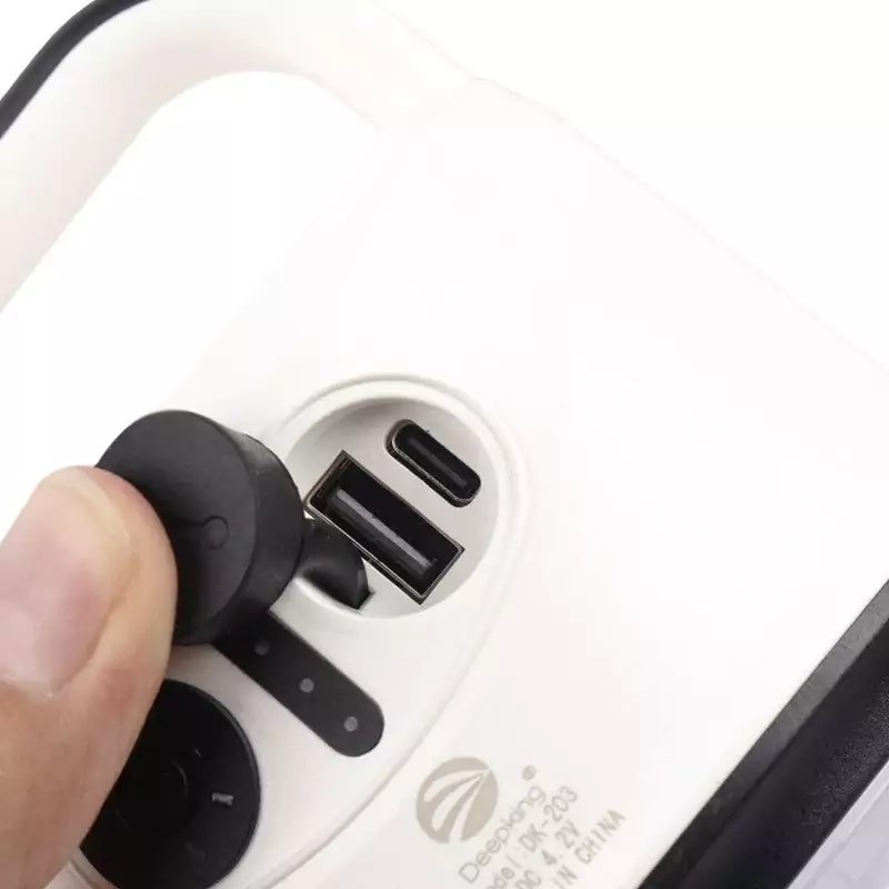 چراغ قوه فانوسی شارژی Deepking DK-203 موفق به کسب استاندارد سلامت و ایمنی محصول CE بهره مندی از بدنه از جنس پلاستیک مقاوم در برابر آسیب های فیزیکی تعبیه پورت USB بر روی بدنه به منظور شارژ اضطراری موبایل و تبلت و … مجهز به کلید فیزیکی جهت مدیریت حالت نوردهی و خاموش و روشن کردن تامین انرژی از طریق باتری داخلی و امکان شارژ مجدد آن از طریق کابل تایپ سی توان خروجی کلی 20 وات، دسته جهت حمل آسان تر همچنین آویز برای آویختن به دیوار و … دارای یک چراغ قوه در قسمت بالایی با نوردهی مهتابی و یک عدد چراغ فانوسی در پایین با نوردهی مهتابی و آفتابی