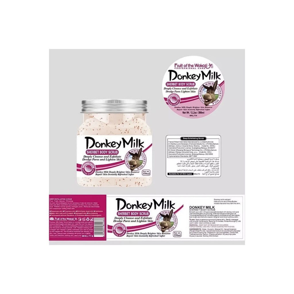 اسکراب شیر الاغ، لایهبردار و روشنکننده، مناسب انواع پوست، مرطوبکننده، ایدهآل برای درخشش و نرمی پوست بدن.