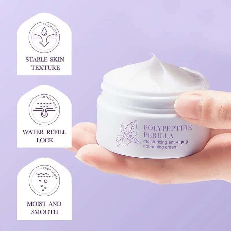 کرم کاسهای پریلا پلی پپتاید، جوانساز و آبرسان، کاهش چین و چروک، مناسب انواع پوست، ایدهآل برای روتین مراقبتی روزانه.