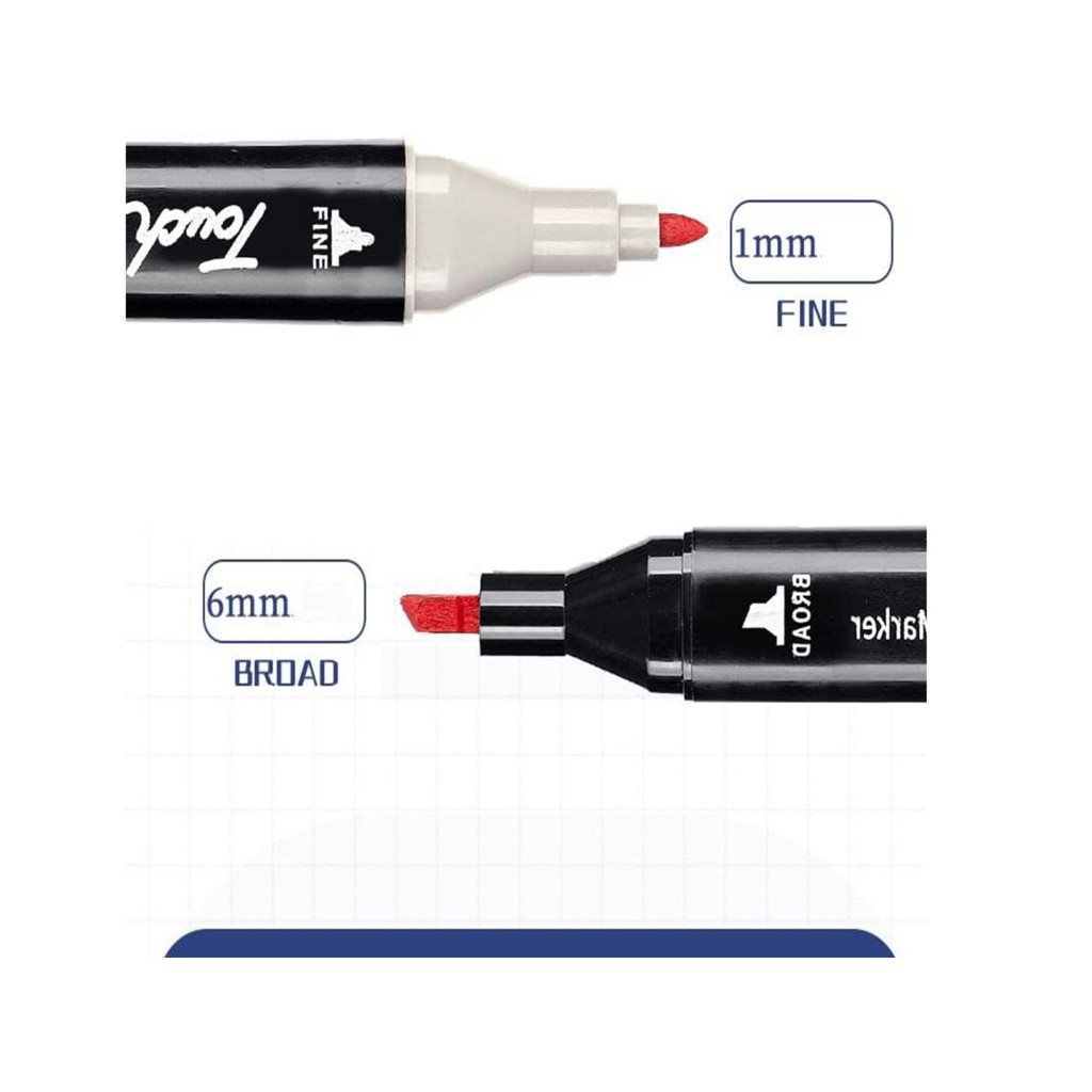 نوک دوگانه (دوتایی): یک سر تخت برای رنگآمیزی سطحهای بزرگ، و یک سر نازک برای طراحیهای دقیق و خطی.