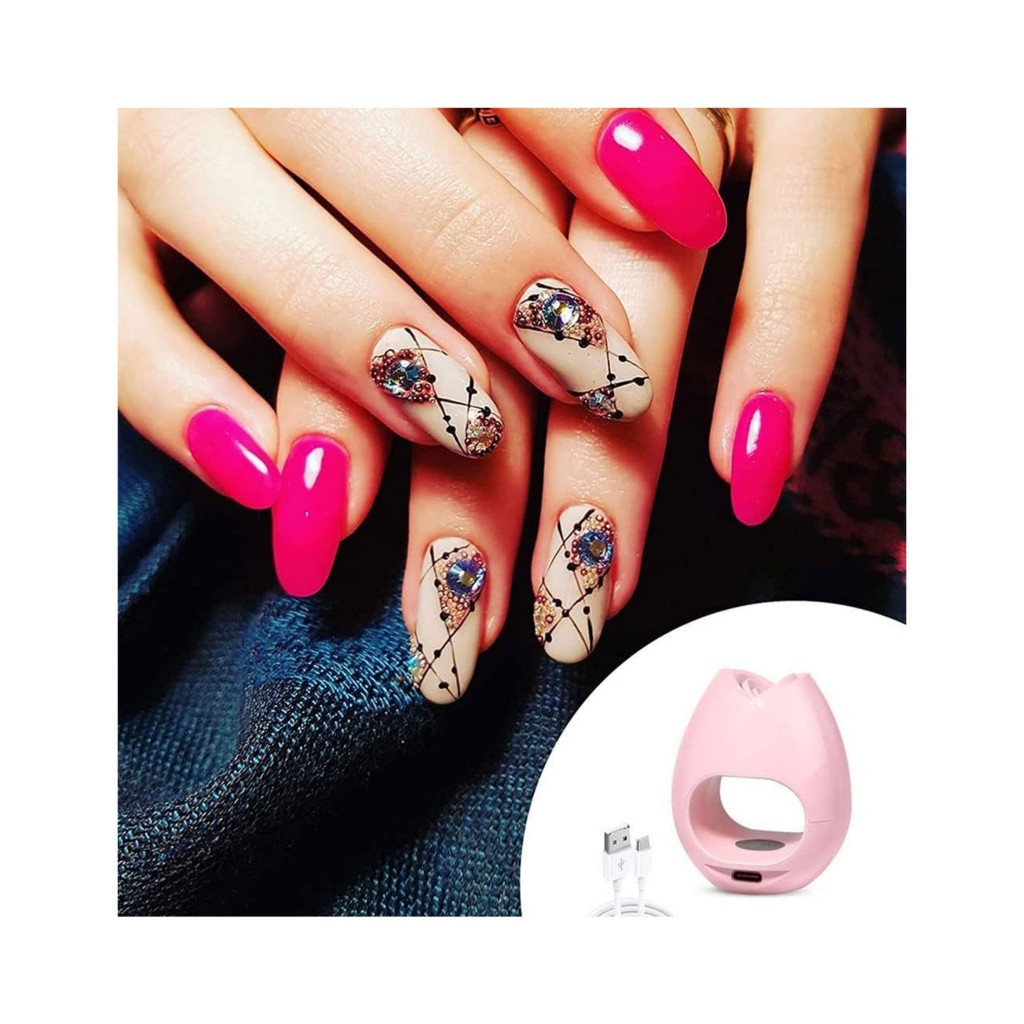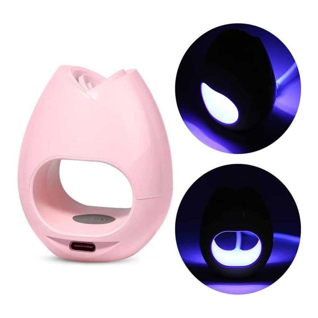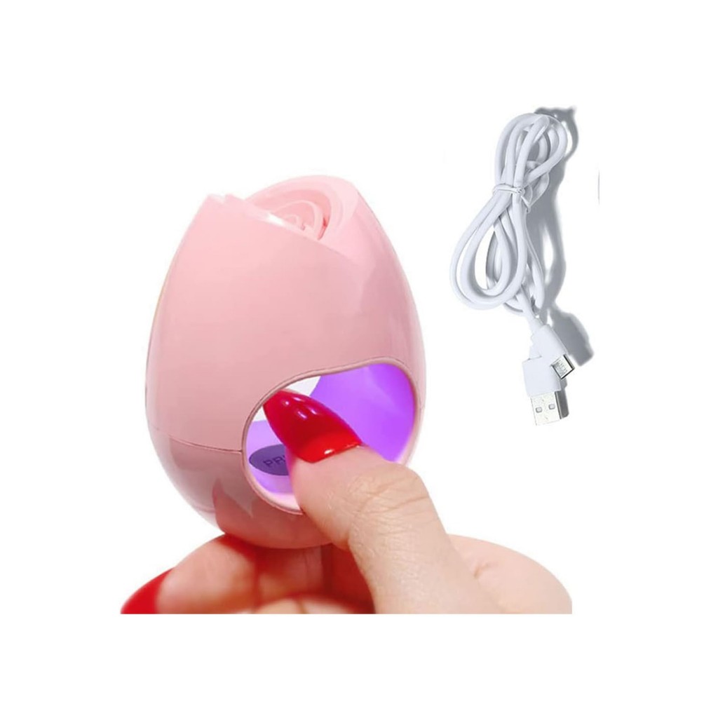 دستگاه یووی مینی با طرح گل رز، خشککننده لاک ژل، سبک و زیبا، مناسب مانیکور خانگی و حرفهای، قابلحمل.