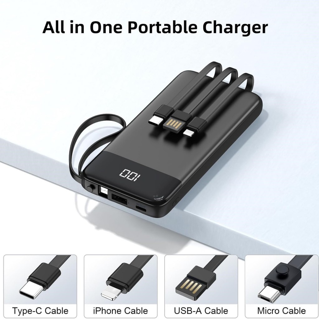 پاوربانک 20000 میلیآمپری ویکو با طراحی شیک و نمایشگر دیجیتال، بهت نشون میده چقدر شارژ داری و با 4 کابل داخلی (Micro، Type-C، Lightning و USB) دیگه لازم نیست کابل با خودت ببری.