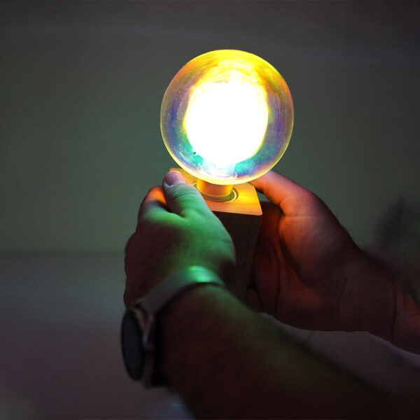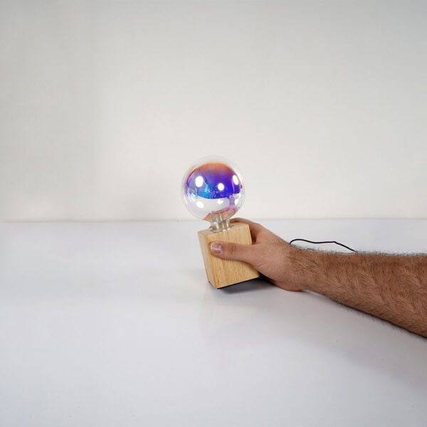 این چراغ باتری نداره و با کابل USB همراهش کار میکنه. کافیه سر کابل رو به پاوربانک، آداپتور یا پورت USB کامپیوتر وصل کنید، بعد با کلید روشن/خاموش روی کابل، نورش رو فعال یا قطع کنید. طراحی کرویش نور رو به همه طرف پخش میکنه و پایه چوبیش حس طبیعی و گرمی به محیط میده.