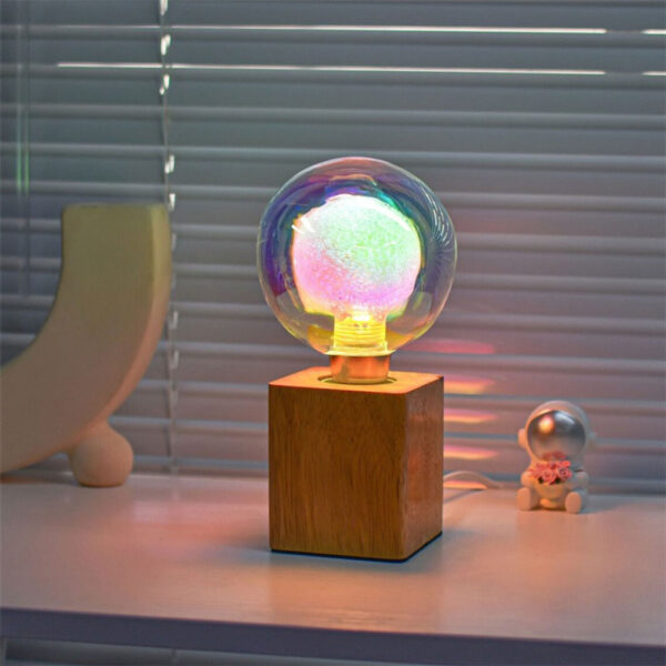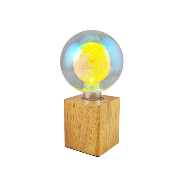 چراغ تزئینی رومیزی پایه چوبی | USB با کلید و نور کروی